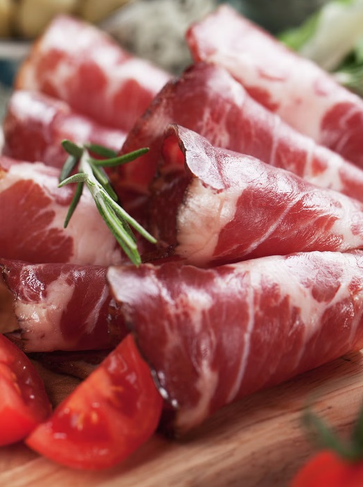 According to The Daily Meal, capicola is a “type of salumi” that’s basically a “cross between prosciutto and sausage.” Like its salt-cured sisters, capicola, which can also be called just “coppa,” is seasoned with a variety of flavors like wine, garlic, and paprika, stuffed into a meat-based casing, then smoked, slow-roasted, or in most cases, “hung for up to six months to cure.” It’s red and white, not as spicy as soppressata, but also not as creamy-tasting and mild as, say, mortadella at What the Hell is ‘Gabagool,’ and Why Does Tony Soprano Talk About It All the Time?.